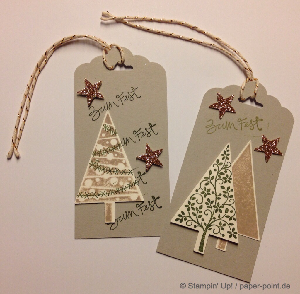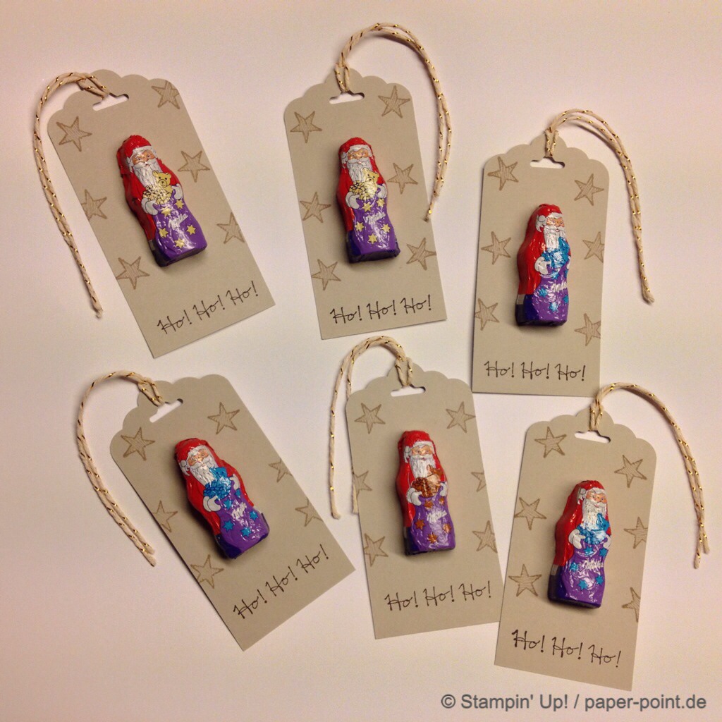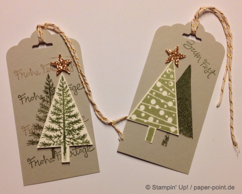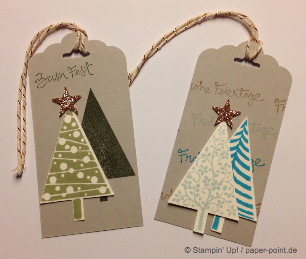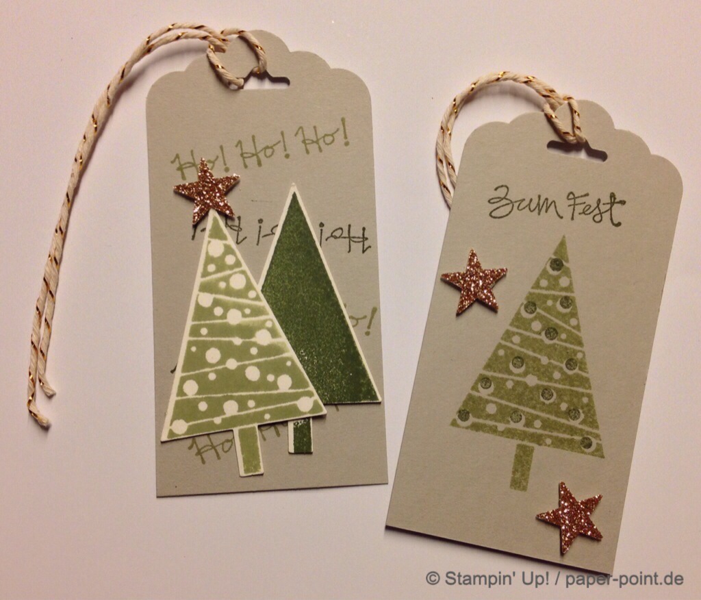 Verwendet haben wir die schmalen Zellophantüten, das Stempelset „Mixed Bunch“, die kleinen Stempel aus „Eine runde Sache“ und Schleifenband in der Farbe „Waldmoos“.