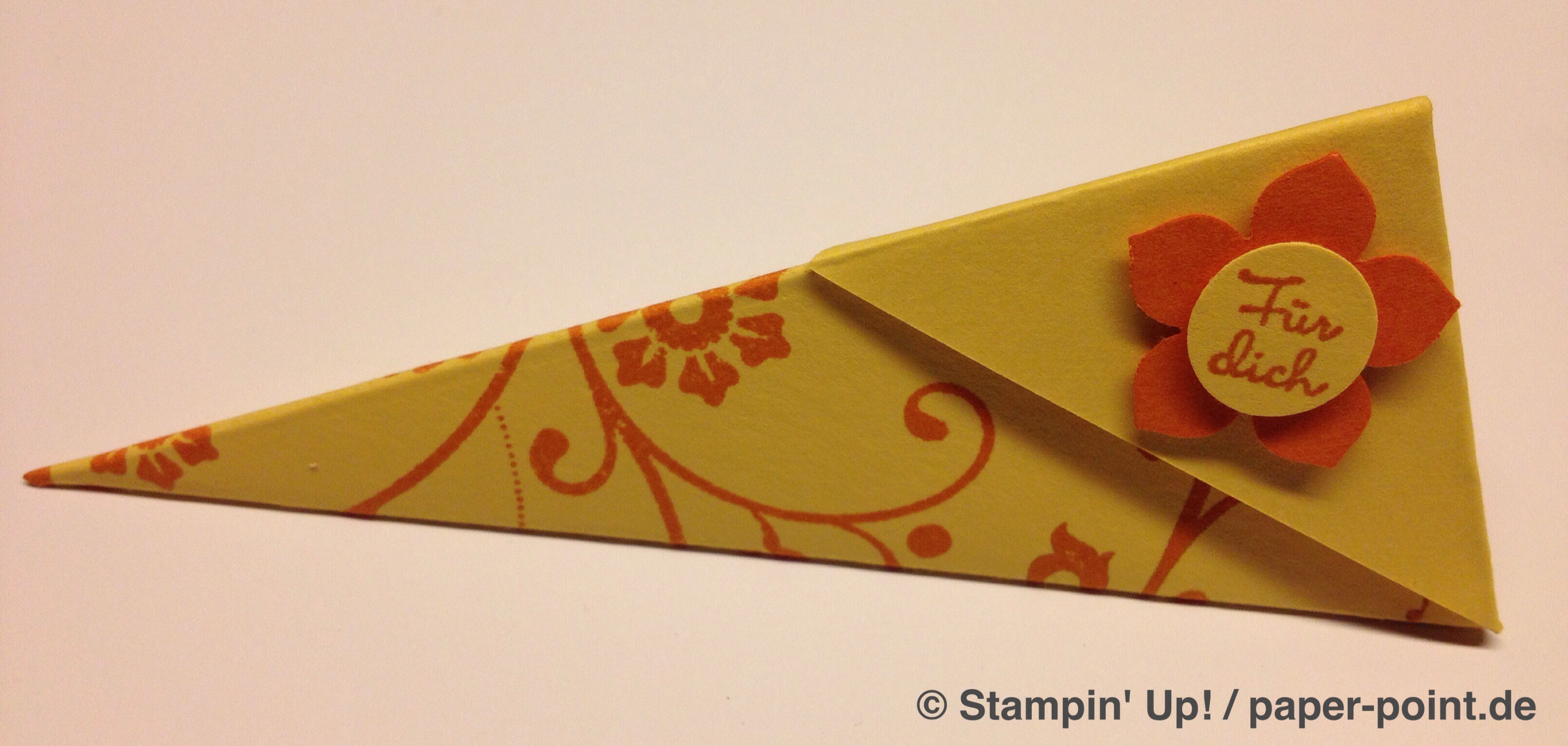 In die dreieckige Öffnung habe ich noch eine kleine Süßigkeit reingesteckt, die ist aber beim Fotografieren noch nicht drin gewesen.