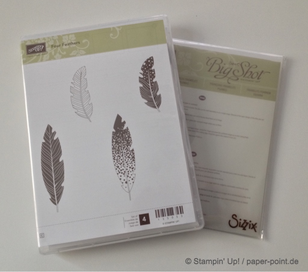 Ich habe auch ein tolles Geschenk von ihr bekommen. In der „Silke“ waren das Stempelset mit den vier Federn („Four Feathers) und die passenden Framelits versteckt. Boah, was hab ich mich gefreut 😀