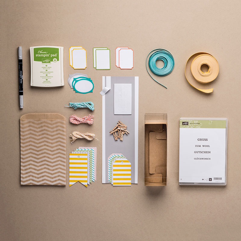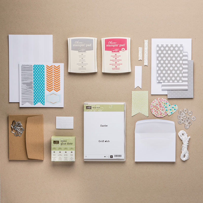 Stampin‘ Up! bietet in der SAB-Broschüre bereits verschiedene Produktpakete an, die ganz einfach über nur eine Artikelnummer zu bestellen sind. Zu jedem dieser Pakete (bzw. pro 60,- € Bestellwert) darf man sich ein kostenloses SAB-Produkt aussuchen.
