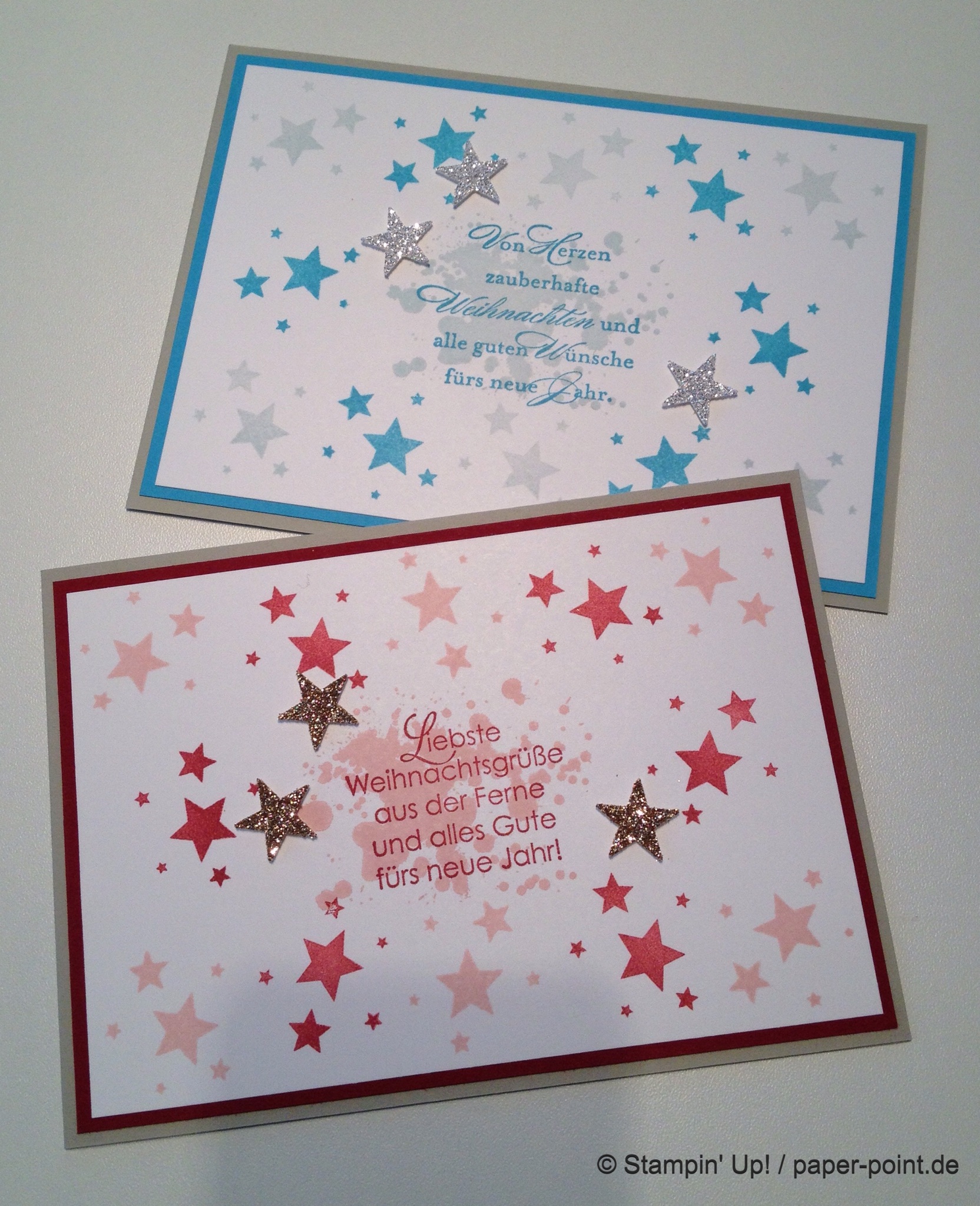Hier kamen die Stempelsets „Perpetual Birthday Calendar“ und „Perfekter Tag“ zum Einsatz. (Auf der unteren Karte ist ein Stempel aus einem älteren Set drauf).