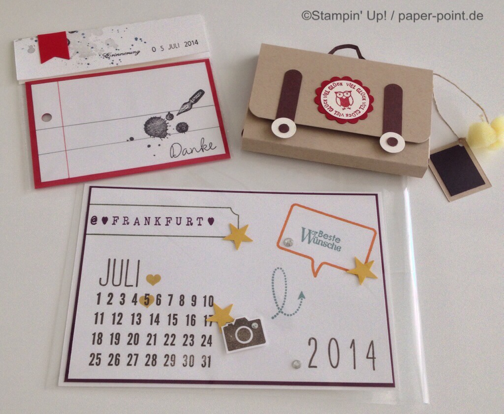 Jeder hat noch einen kleinen Gruß gestempelt, ausgestanzt und mit einer Schleife an der Schachtel festgebunden: