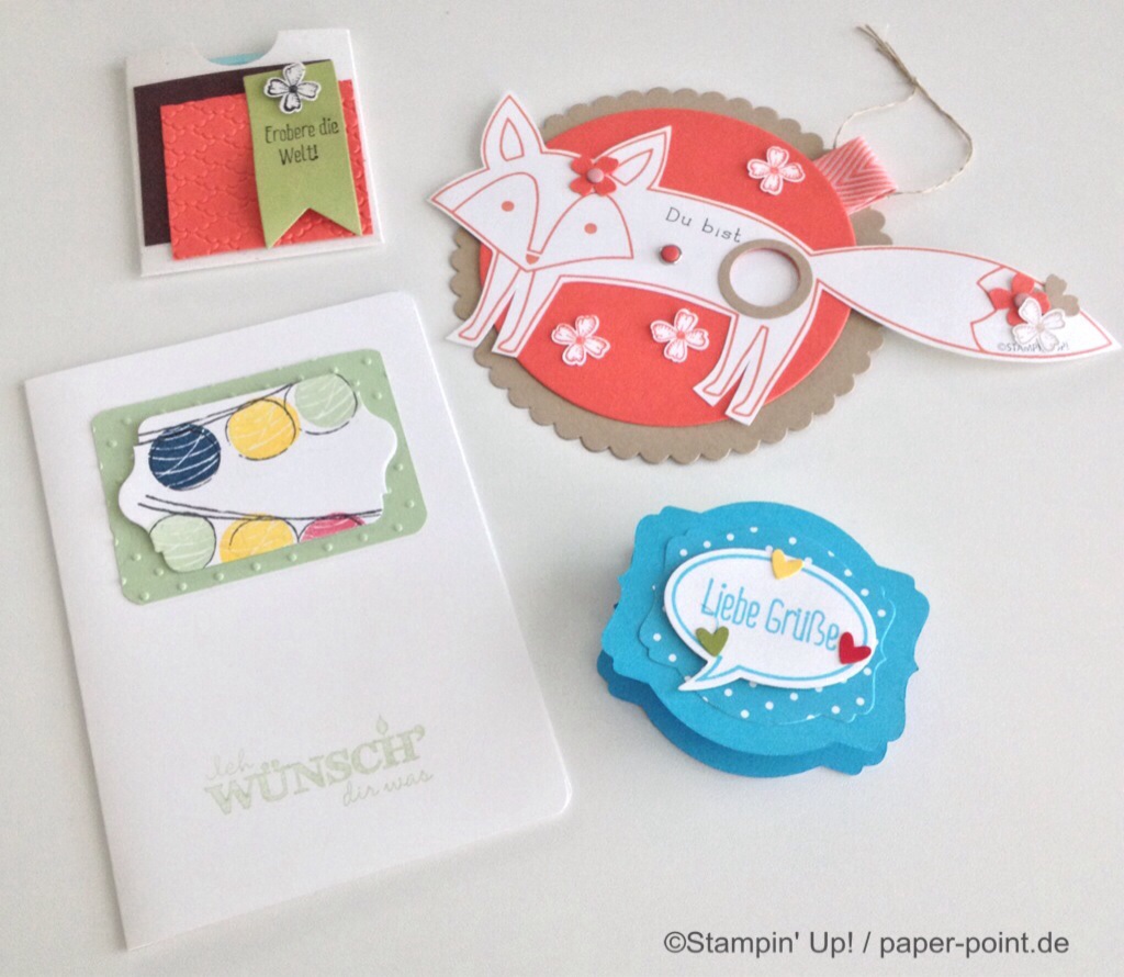 Wir haben das Besondere Designerpapier Unterm Christbaum verwendet. Jeder konnte sich einen Bogen seiner Wahl aussuchen und mit der Big Shot ausstanzen.