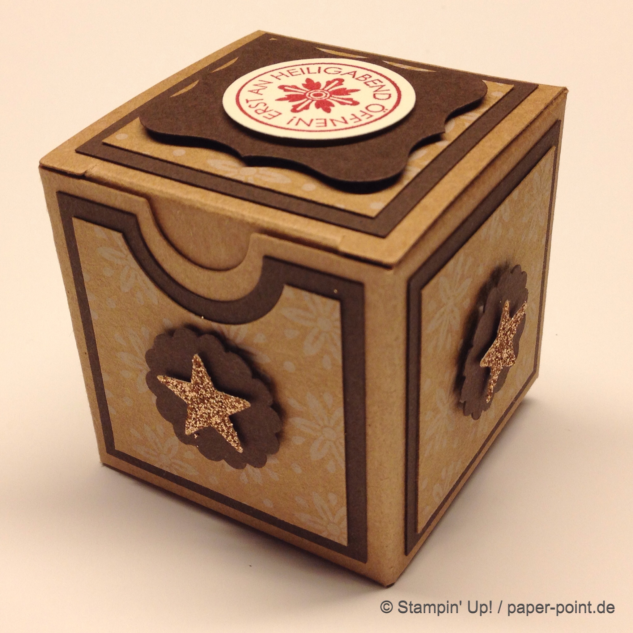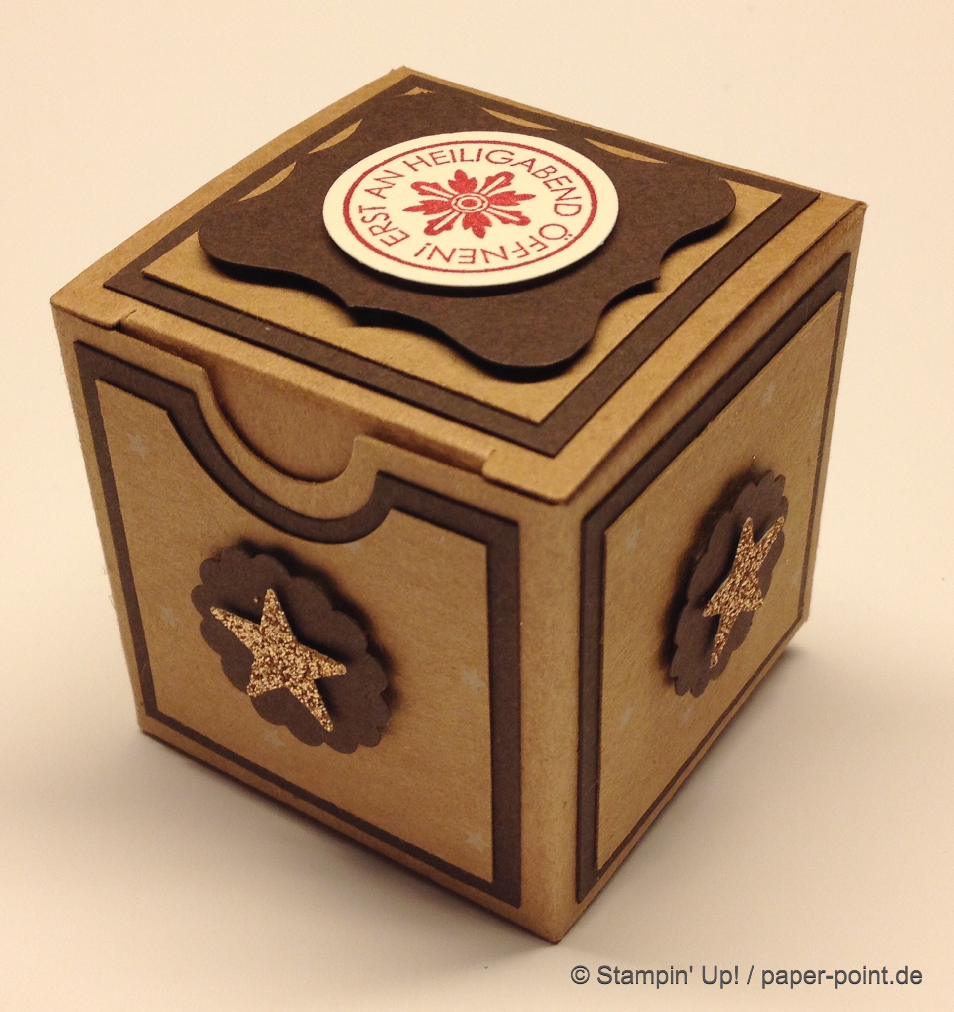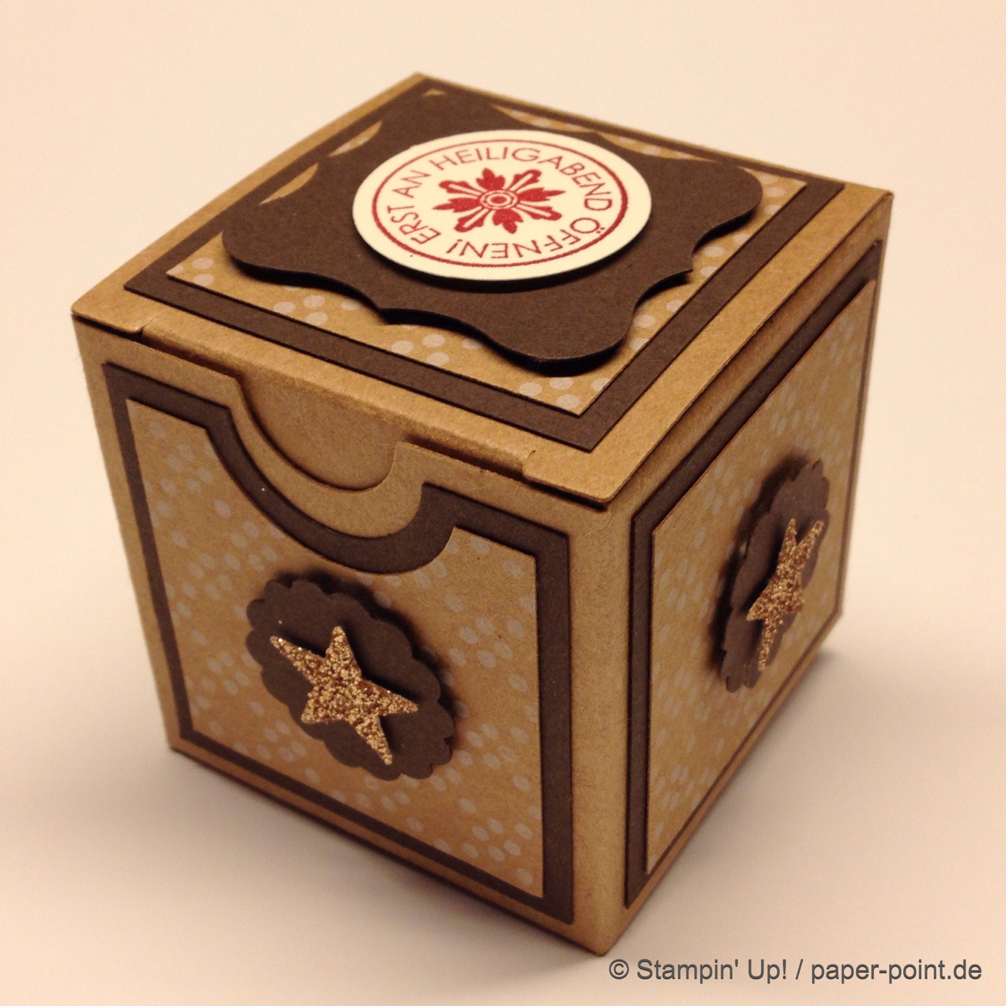 Als erstes eine kleine Schachtel mit Deckel und kleiner Gruß obendrauf: