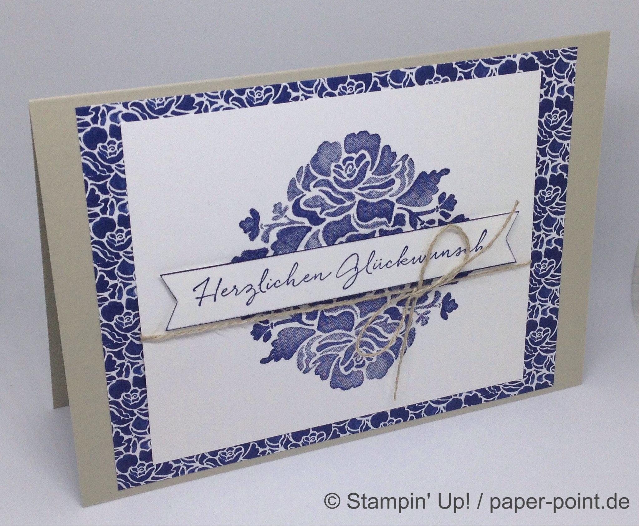 Der Hintergrund ist aus dem Designerpapier „Blumenboutique“. Das gibt es leider nicht mehr in dieser Farbe, dafür aber aktuell in den schönen neuen InColor-Farben.