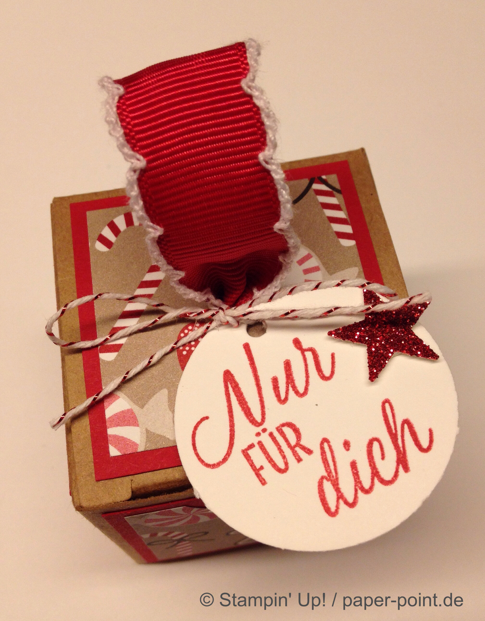 Den Stern haben wir mit den Thinlits Formen Sternenzauber ausgekurbelt und aufgeklebt.