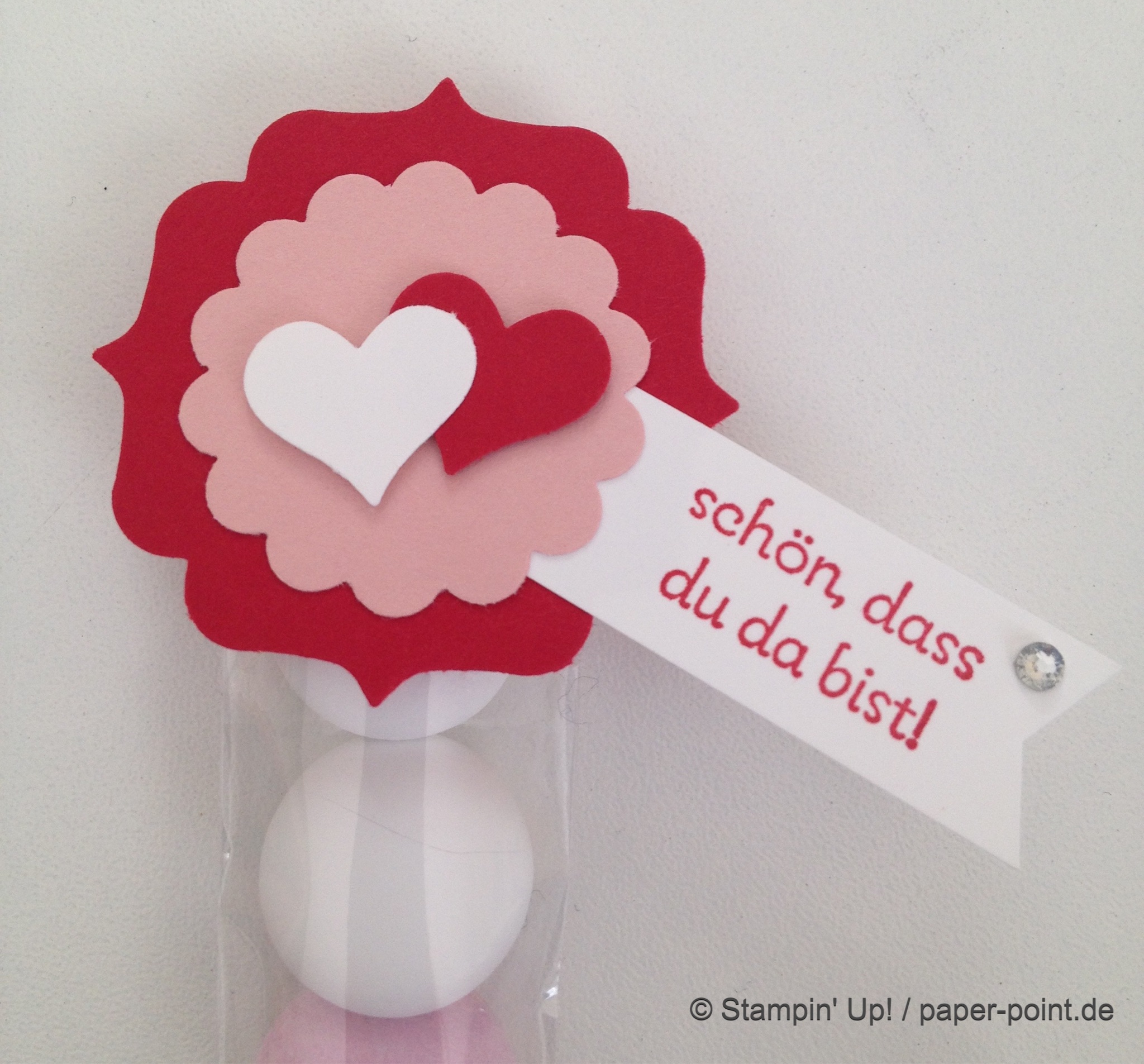 Nach Belieben wurden noch kleine Schleifchen (Elementstanze Schleife) und natürlich Glitzersteine aufgeklebt.