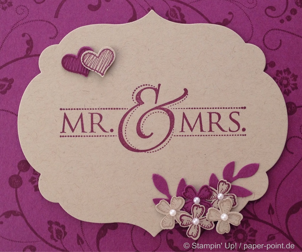 In diesem Fall war es der große Stempel aus „Flowering Flourishes“, dazu der schöne Spruch „Für immer und ewig“ aus dem Set „Großes Glück“.Fotobox Für immer und ewig