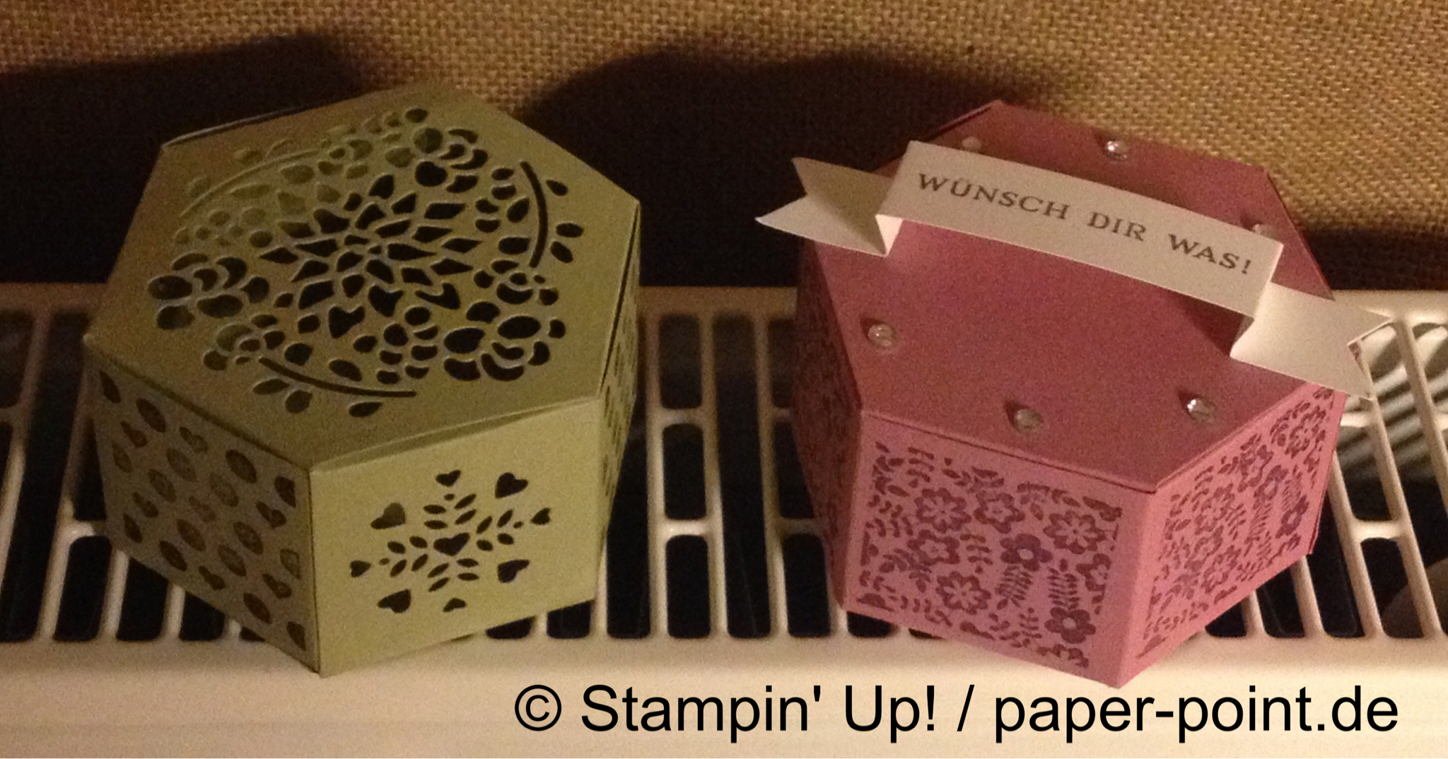 Als letzte Verpackung durften die Teilnehmerinnen noch die neue sechseckige Schachtel aus dem Produktpaket „Fenster zum Glück“ ausprobieren.