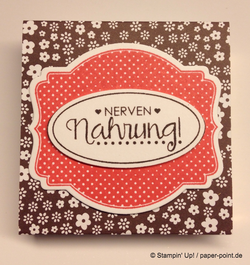 Das ‚Hallöchen‘ habe ich im Set „Doppelt gemoppelt“ gefunden und mit der leider nicht mehr erhältlichen „Wortstanze“ ausgestanzt und mit Klebepads augeklebt.