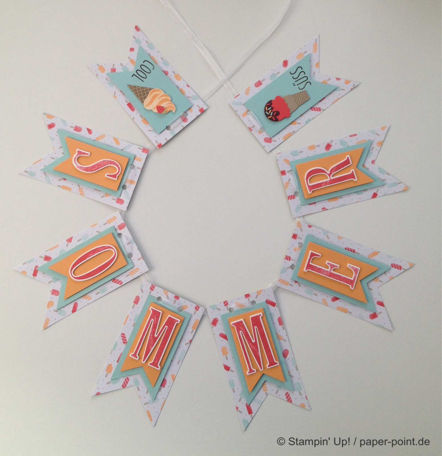 Für den ersten Bloghop-Tag habe ich mich für eine bunte Sommergirlande entschieden. Wie wäre es mit einer EISBAR?