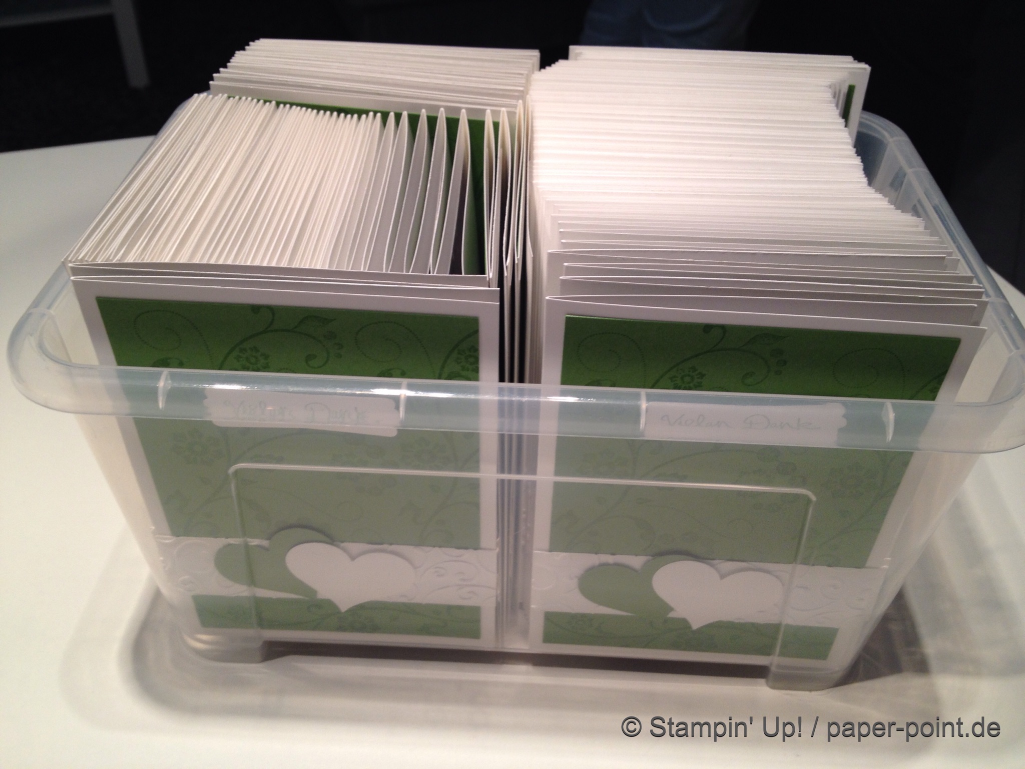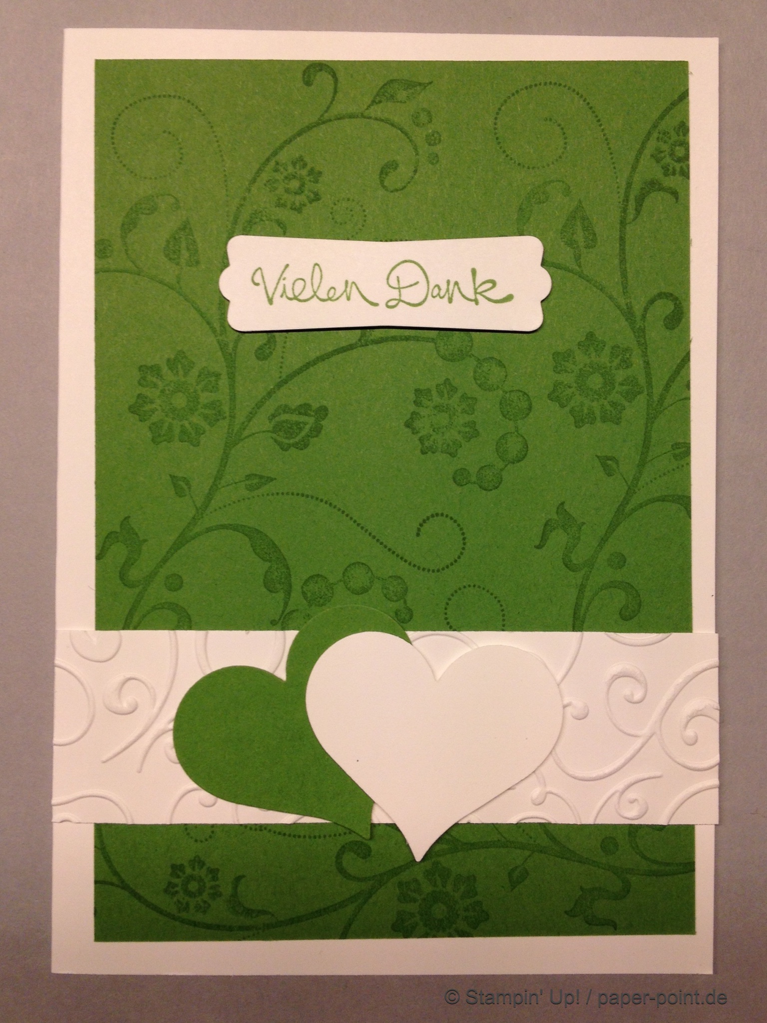 Das letzte Projekt war eine Karte. Und da ich weiß, dass zwei der Bastlerinnen gerne mit der BigShot prägen oder mit dem Erhitzungsgerät das Prägepulver schmelzen lassen, habe ich beides in das Projekt eingebunden.