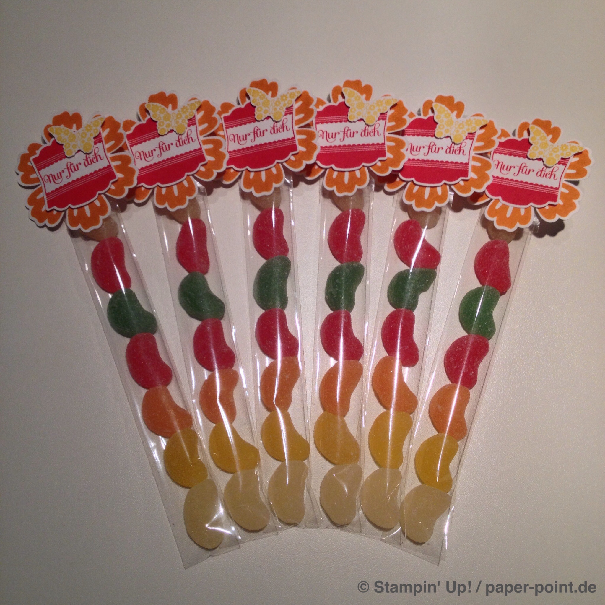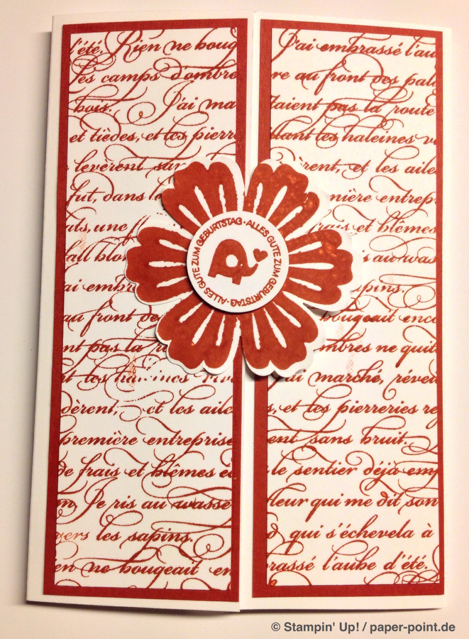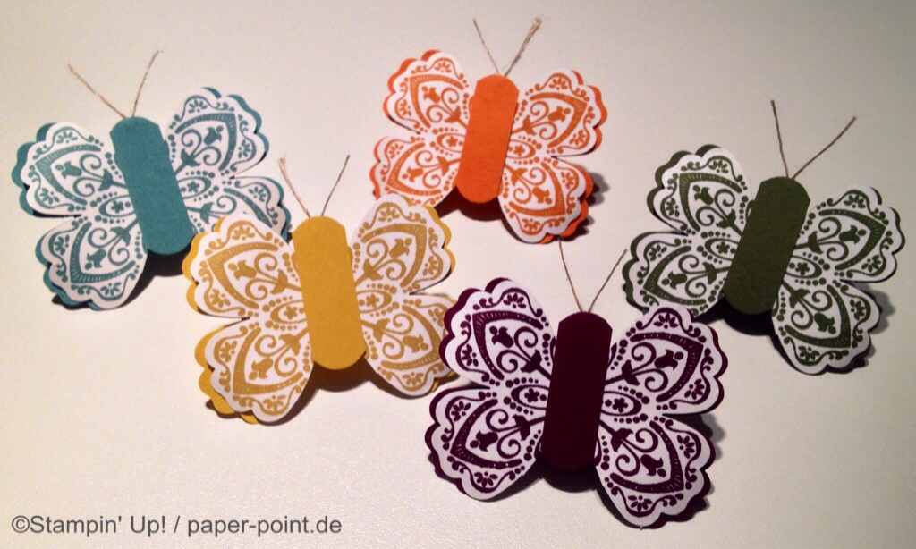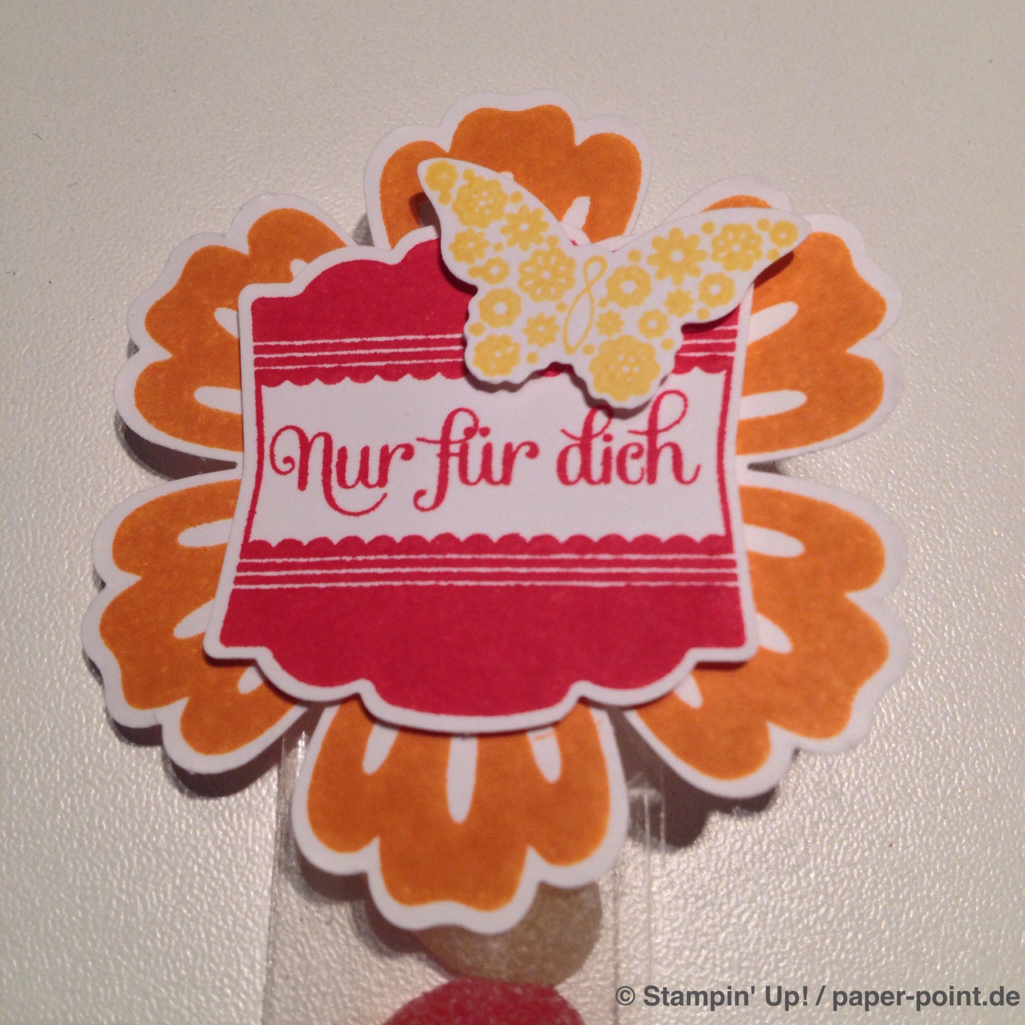Wir haben die verschiedenen InColors 2014-2016 und das passende Designerpapier verwendet. Die Blume haben wir aus „Mixed Bunch“ ausgewählt.