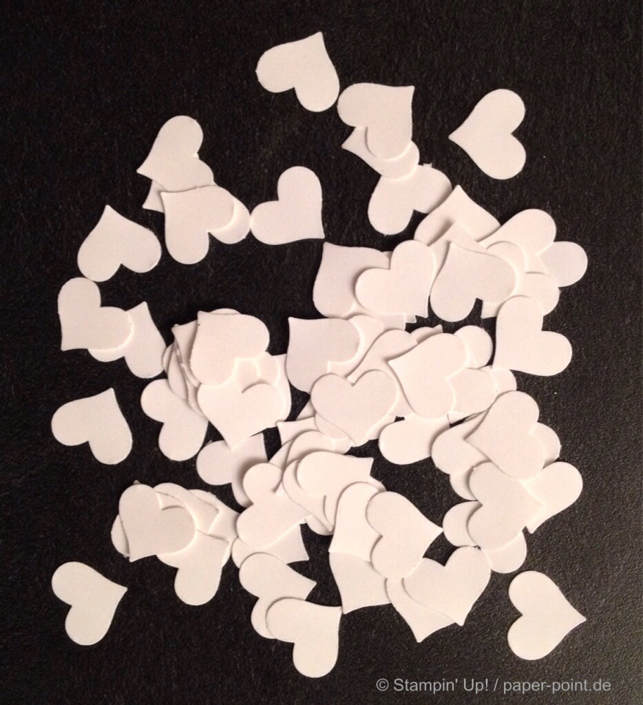 kleine Herzchen aus Farbkarton Flüsterweiß (aus Itty Bitty Akzente)