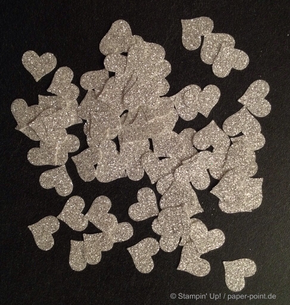kleine Herzchen aus Glitzerpapier Silber