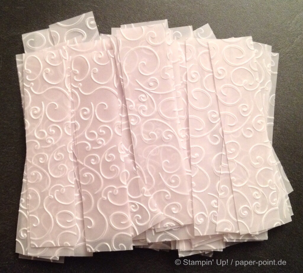 Streifen aus weißem Pergament, geprägt mit der Big Shot (Prägefolder nicht von SU!)