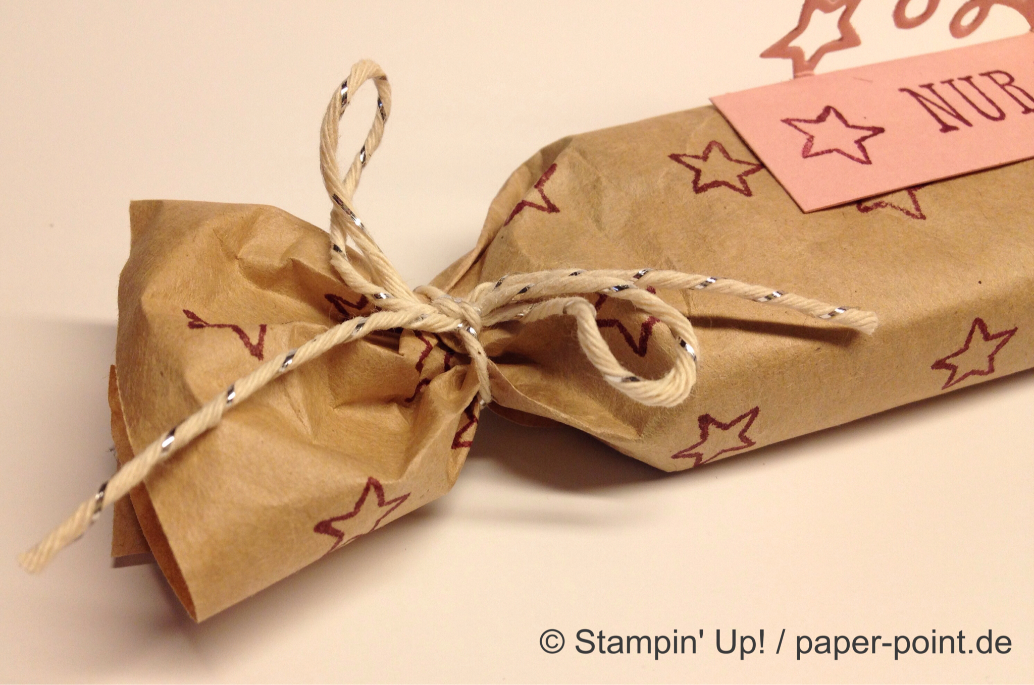Nach dem Zusammenfalten haben wir eine Banderole zum Verschließen darum geklebt. Diese hatte ich schon mit einem kleinen Schlitz vorbereitet, damit man das tolle Sternenfeuer aus der Edgelits Form einstecken konnte. Mit einer Schleife darum hat man den Schlitz schon gar nicht mehr gesehen…