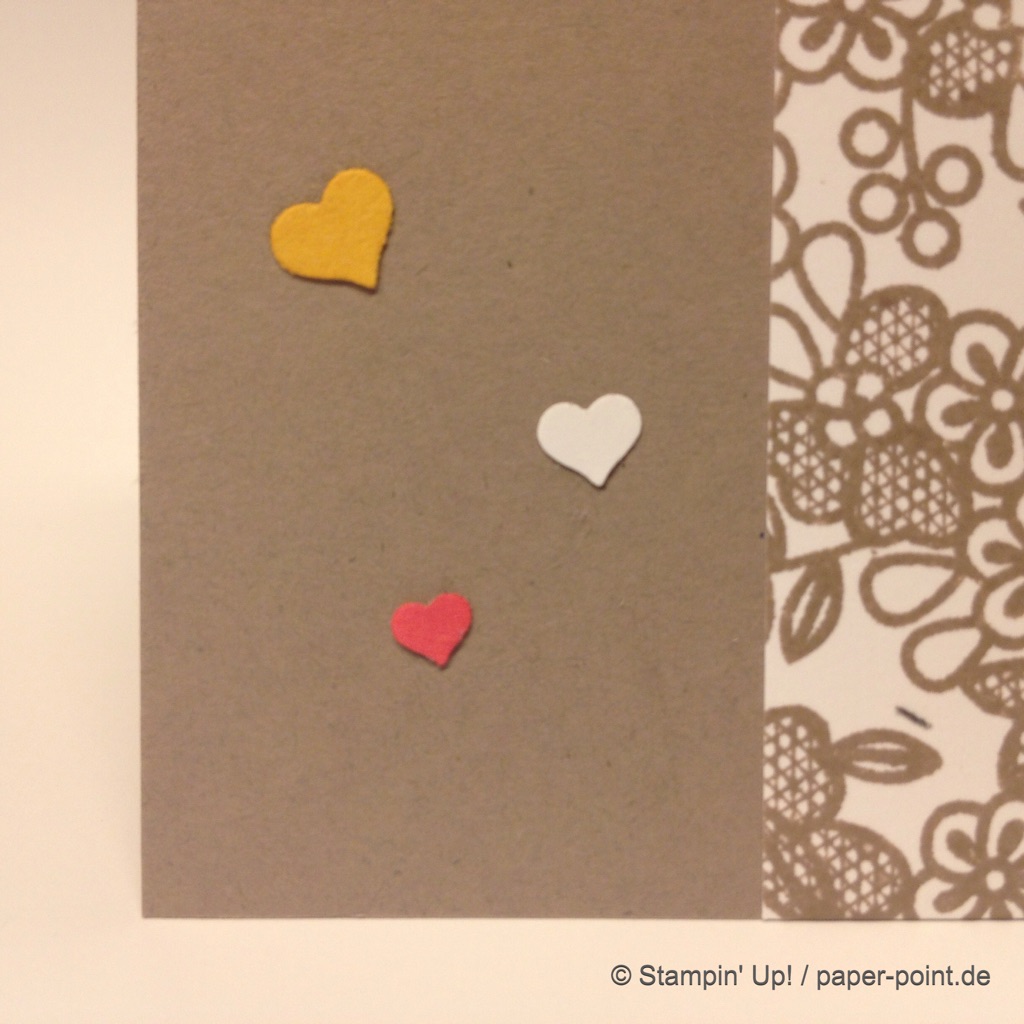 Den Körbchengriff habe ich mit Itty Bitty Herzchen verziert und eine Schleife aus dem tollen Pünktchen-Spitzenband darum gebunden. Das Band ist so schön weich und lässt sich sehr gut verarbeiten.