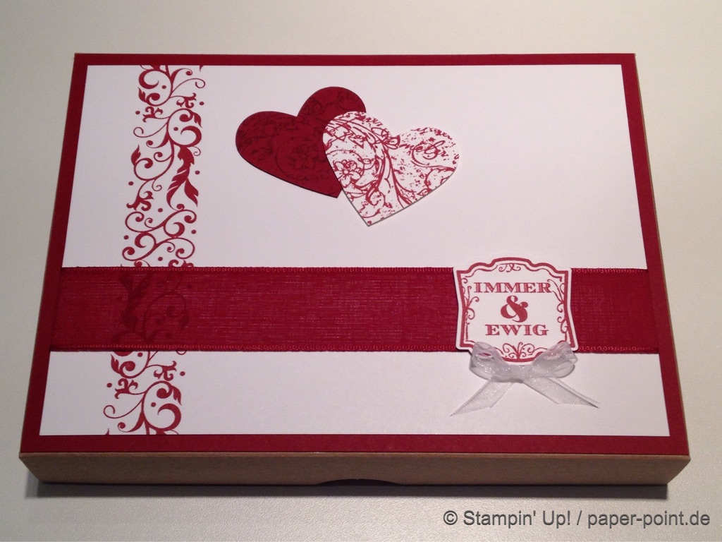 Heute möchte ich euch eine weitere Fotobox zeigen zeigen, diesmal in glutrot und flüsterweiß, wie ja die Überschrift schon verraten hat: