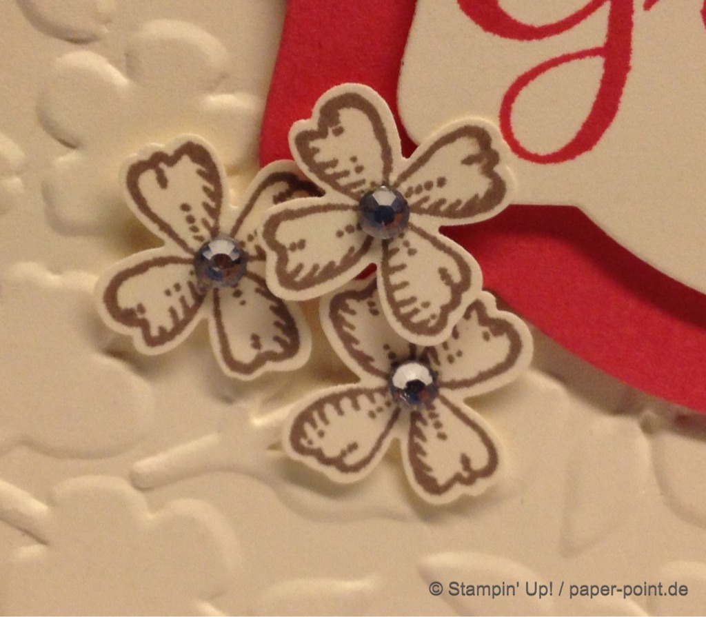 Bei der zweiten Karte haben wir uns gleich etwas gesteigert und außer stempeln und stanzen auch gleich noch mit der Big Shot geprägt. Das ist immer ein toller Wow-Effekt!
