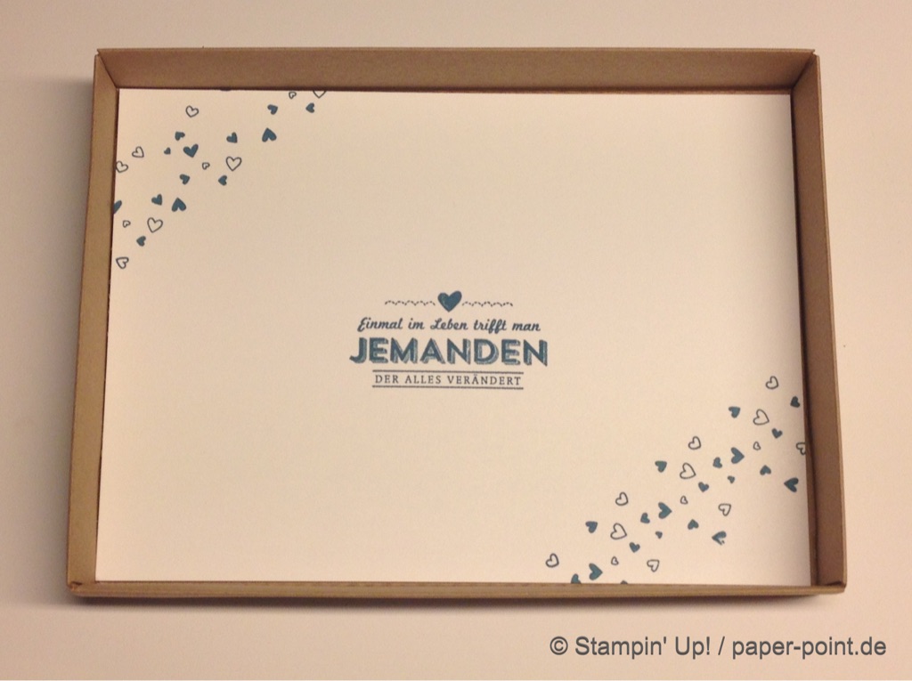 Der Spruch befindet sich auch in diesem Set und wurde in chili gestempelt und als Schildchen aufgeklebt.