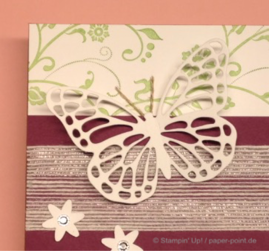 Die letzte Karte, die ich gezeigt hatte, war eine Glückwunschkarte mit dem Stempelset „Florale Grüße“. In ähnlicher Art habe ich noch eine Hochzeitskarte gebastelt: