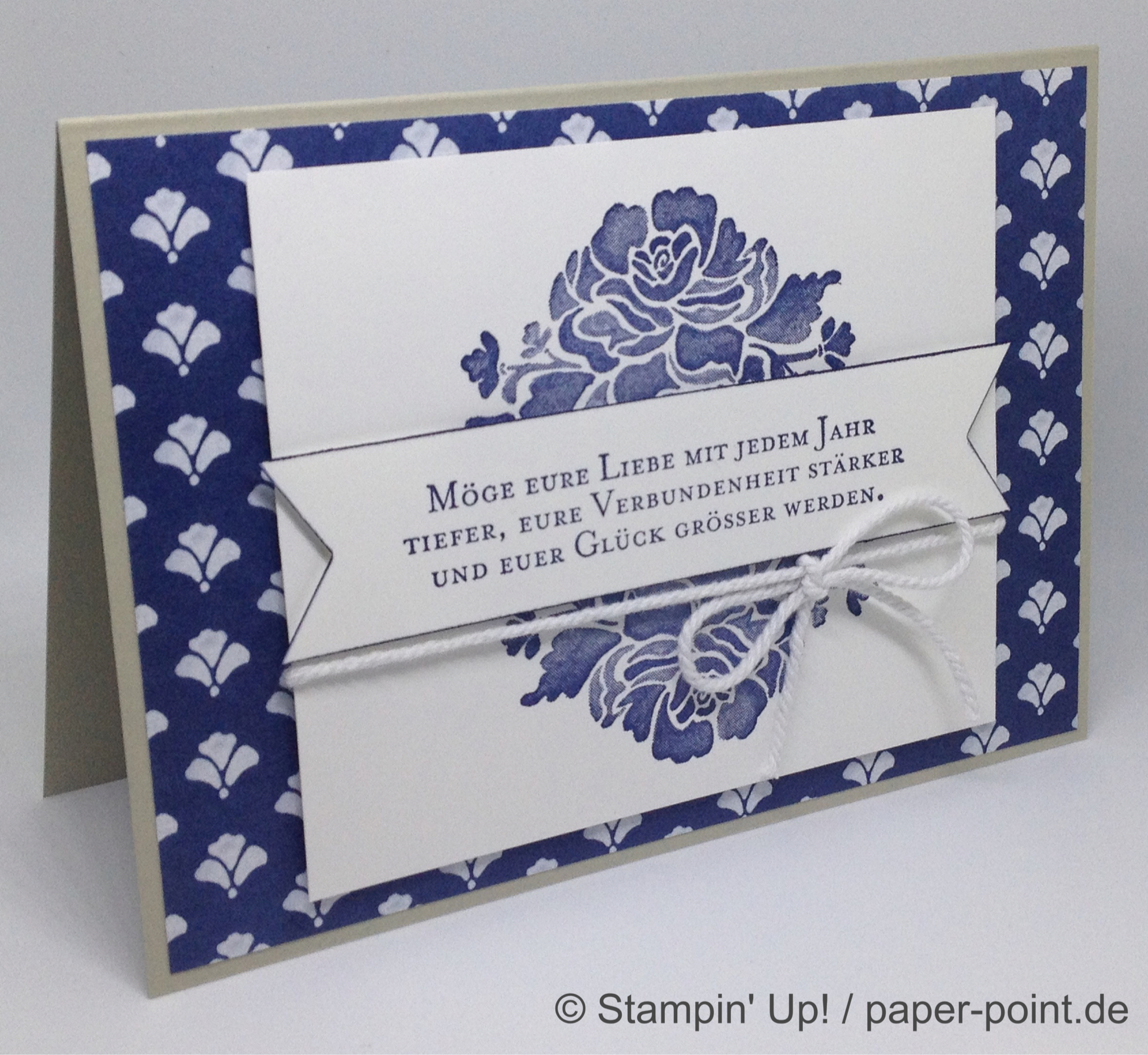 Auch hierfür verwendete ich wieder das Designerpapier „Blumenboutique“, darauf wieder die Rosen auf einem weißen Stück Farbkarton und der schöne Spruch aus dem Stempelset auf ein extra Banner.