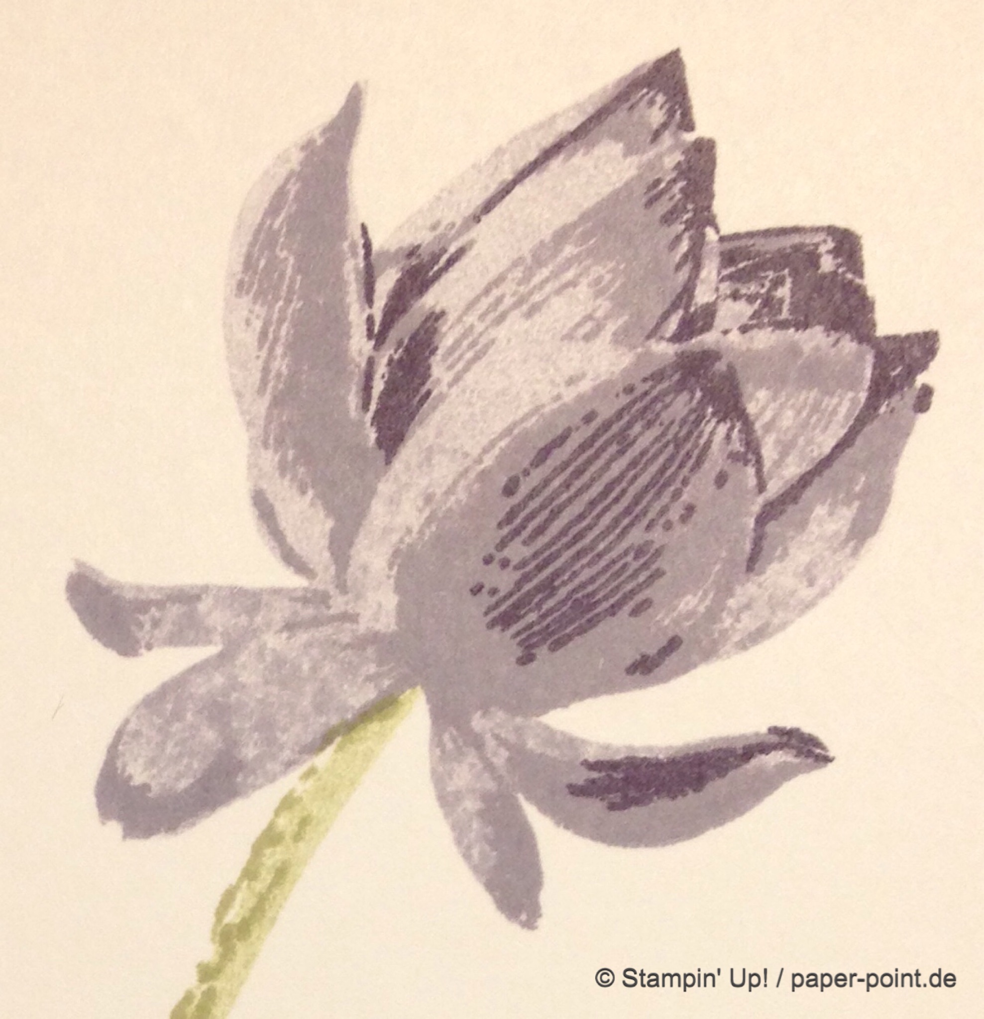 Begonnen haben wir mit dem Stempelset „So froh“ aus der aktuellen Sale-A-Bration. Wir haben Blüten in Aubergine/Blauregen und Kirschblüte/Chili gestempelt. Wie das funktioniert hatte ich Euch schon in einem meiner letzten Beiträge erklärt. Der Hintergrund wurde mit der Prägeform Frühlingsblumen geprägt.