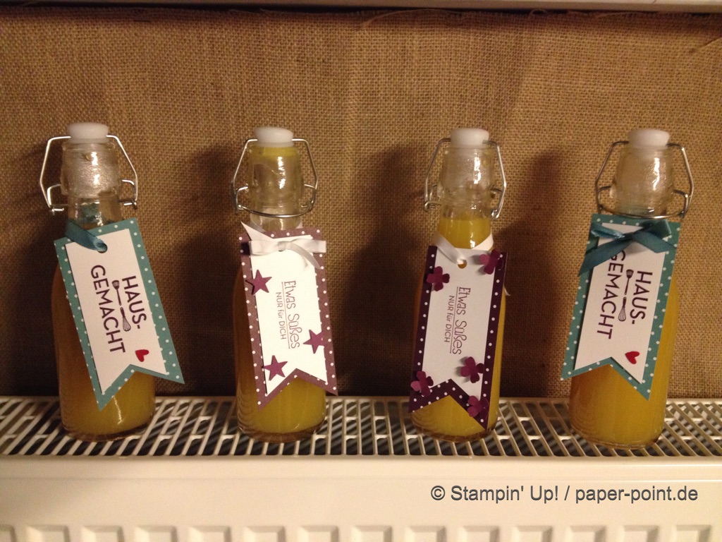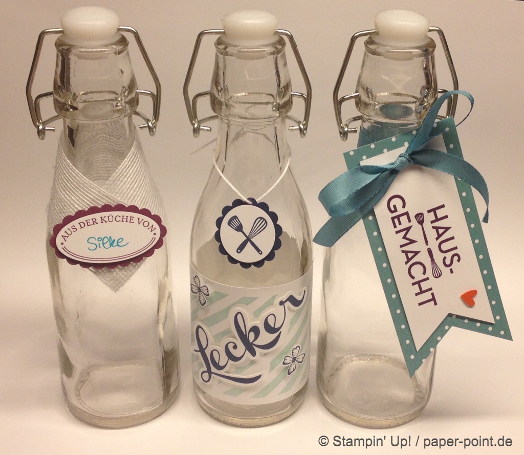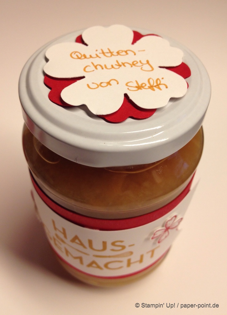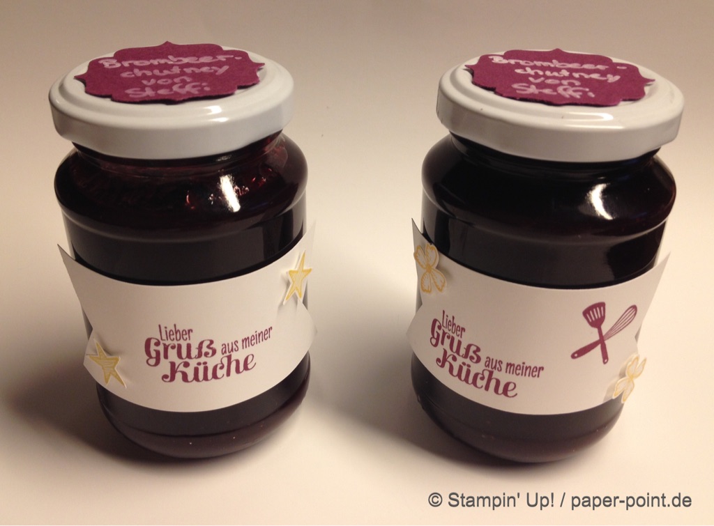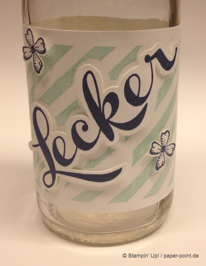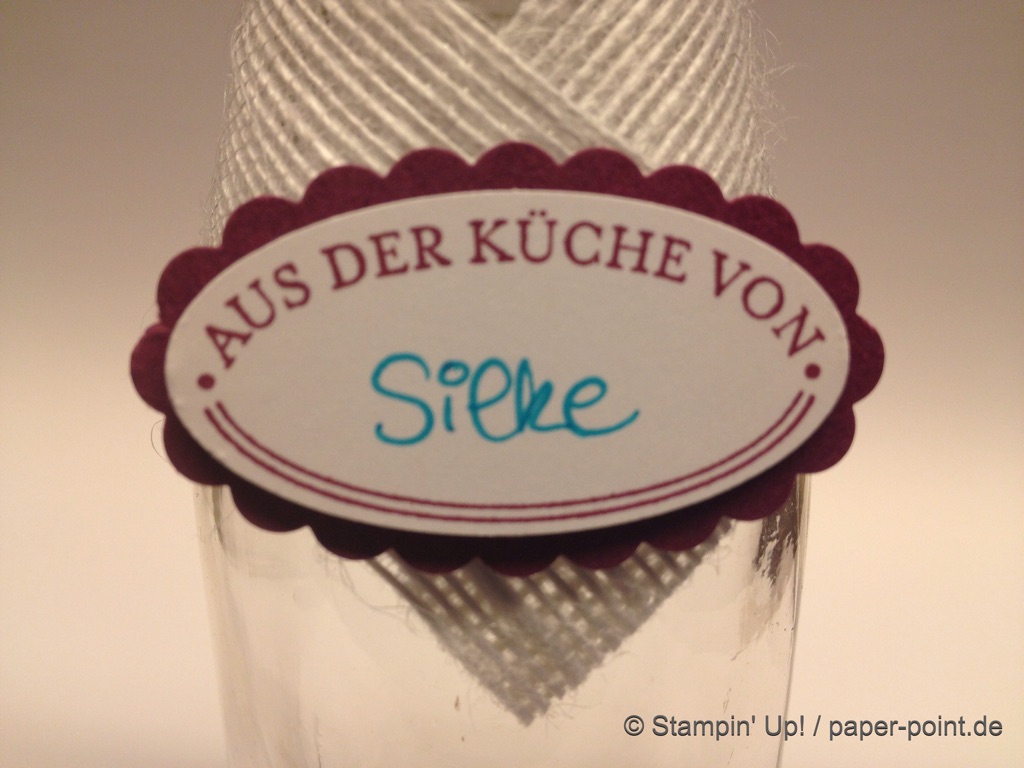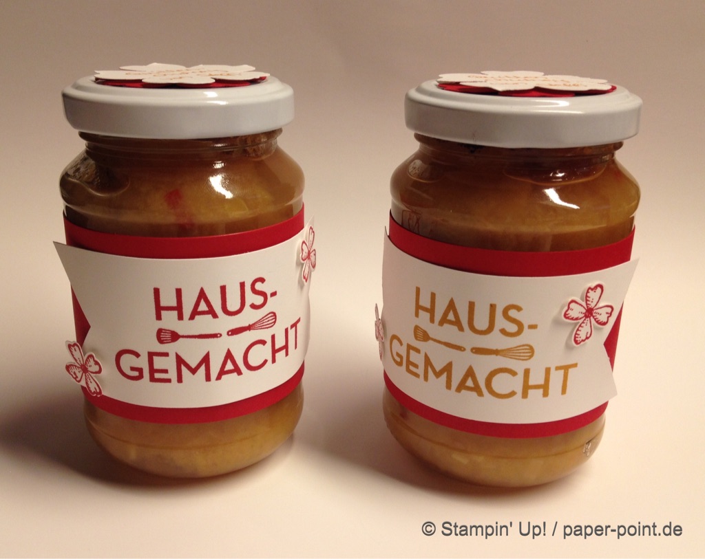 Weiterhin behilflich für das Motiv waren mir die Stempel „Glasklare Grüße“ und die Framelits „Einweckgläser für alle Fälle“ (JK S. 51)