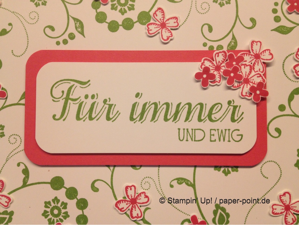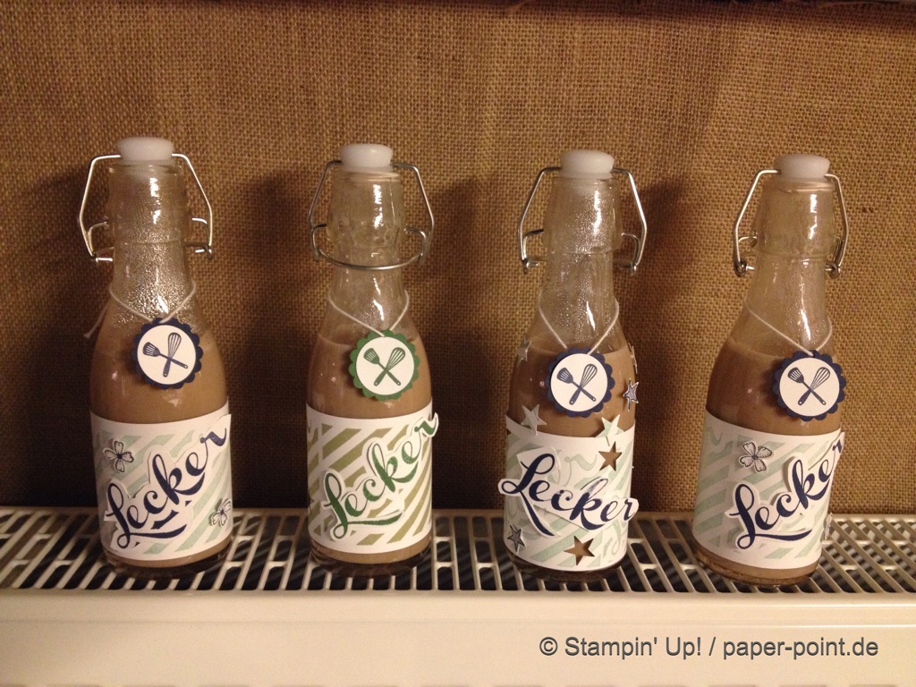 Den Spruch für das Etikett habe ich aus „Doppelt gemoppelt“, das Stanzrähmchen aus einem älteren Set „Rosengarten“ und anschließend den Rand mit Stempelfarbe eingefärbt.