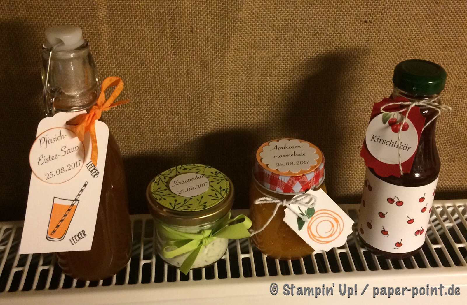 Für die Karte und einen passenden Anhänger haben wir das Stempelset „Tea Together“ und die Stanzformen „Teekränzchen“ verwendet. Diese beiden Artikel werden auch in den neuen Jahreskatalog übernommen 😀