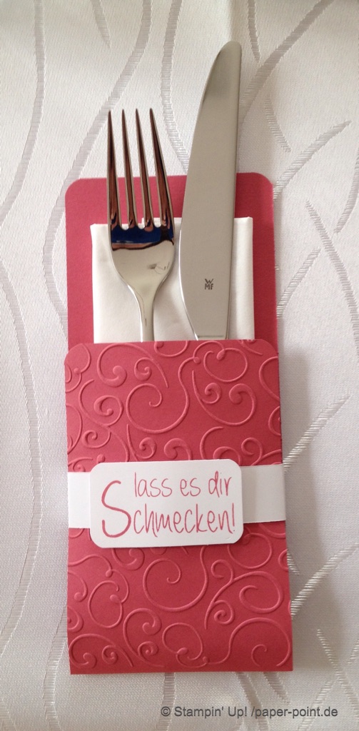Für das Kärtchen haben wir mit der Stanze „Runder Karteireiter“ eine Ziehlasche ausgestanzt und an der Oberkante angeklebt.