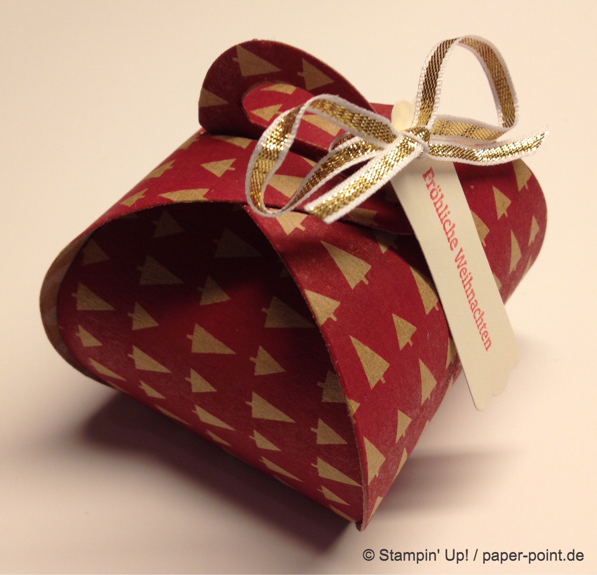 Die Schleife mit der Elementstanze Schleife 2x ausstanzen, zusammenkleben und auf die Banderole kleben