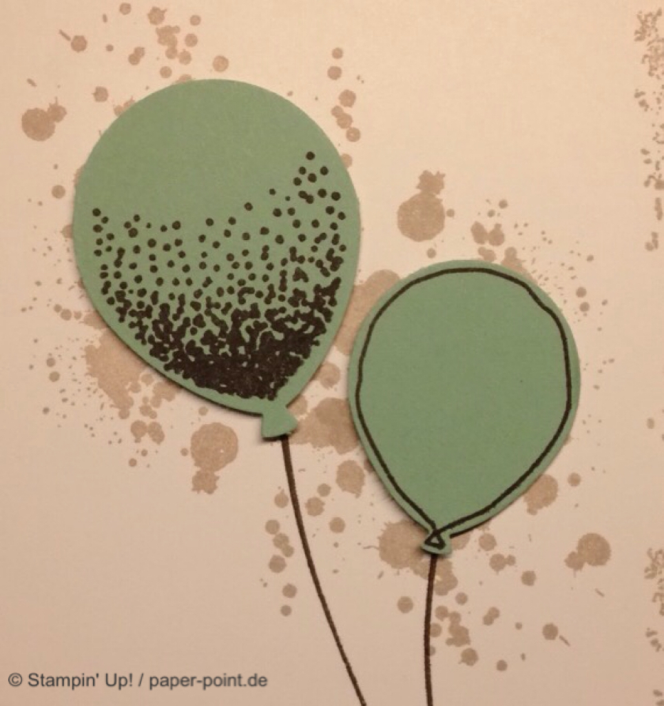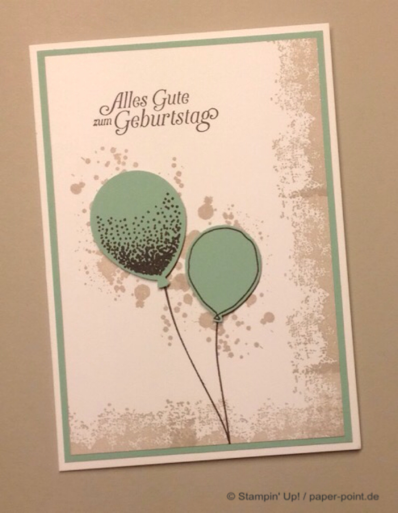 Die Luftballons sind mit den „Partyballons“ gestempelt und mit der „Stanze Luftballons“ ausgestanzt. Im Hintergrund habe ich wieder mal mit „Gorgeous Grunge“ rumgekleckst 😀
