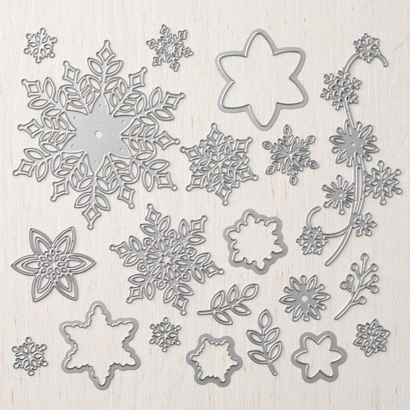 Die Motive sind aus den Stempelsets „Glasklare Grüße „, „Kurz gefasst“, „Jahr voller Farben“ und „Wintermärchen“. Den Spruch findet man im Set „Mit Stil“.