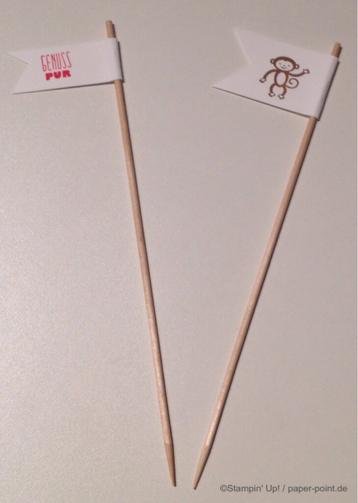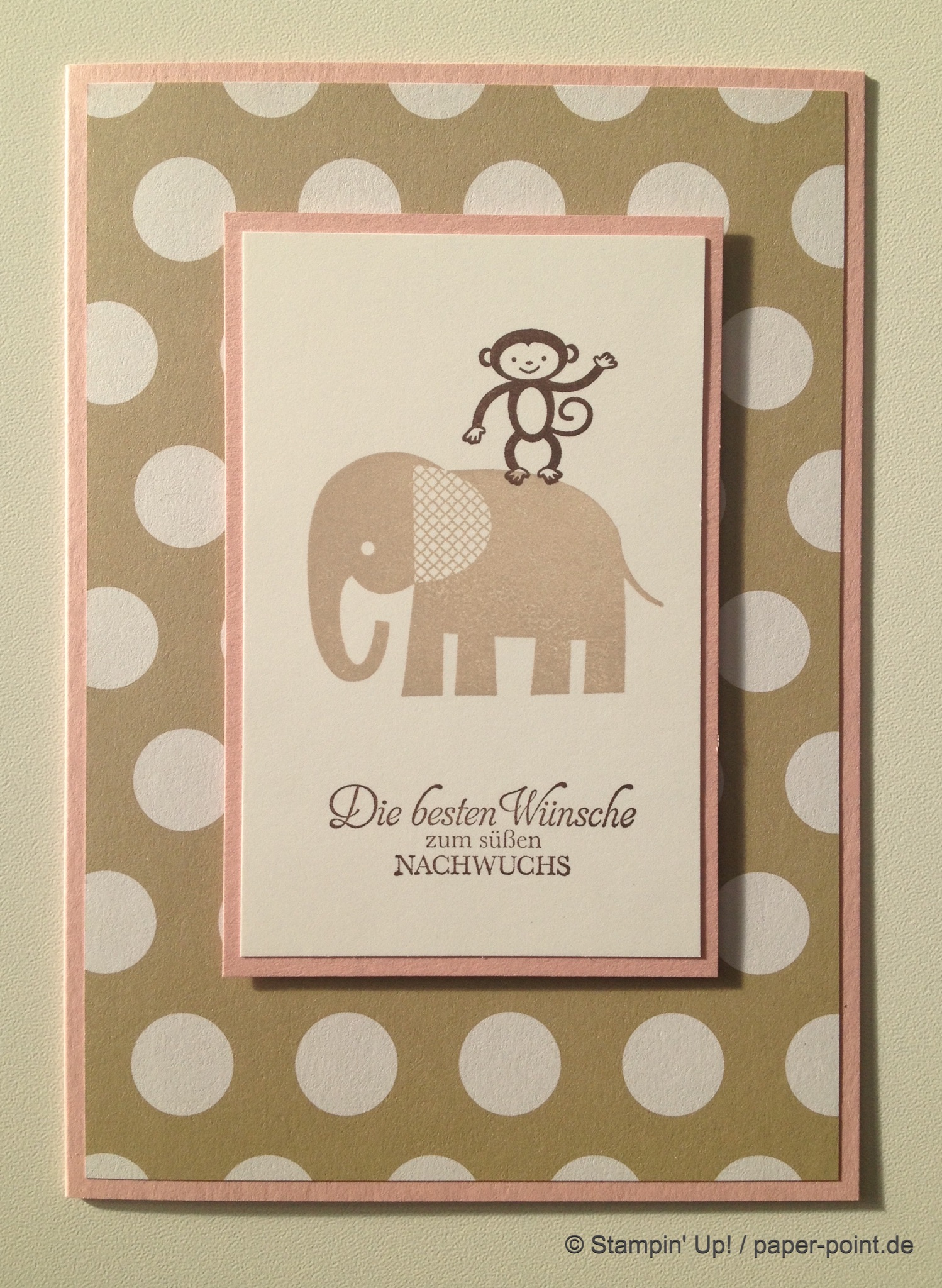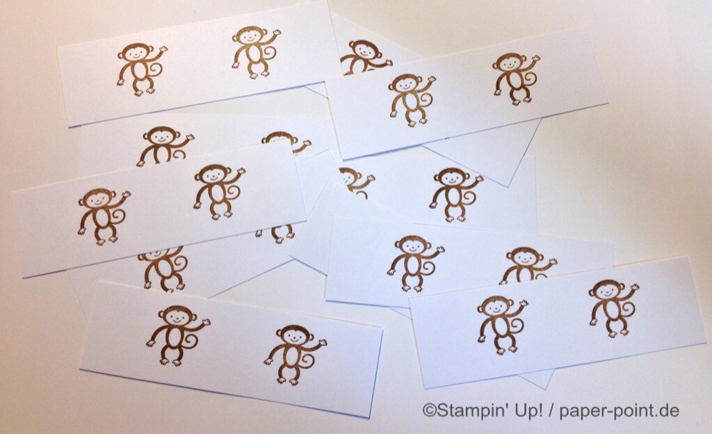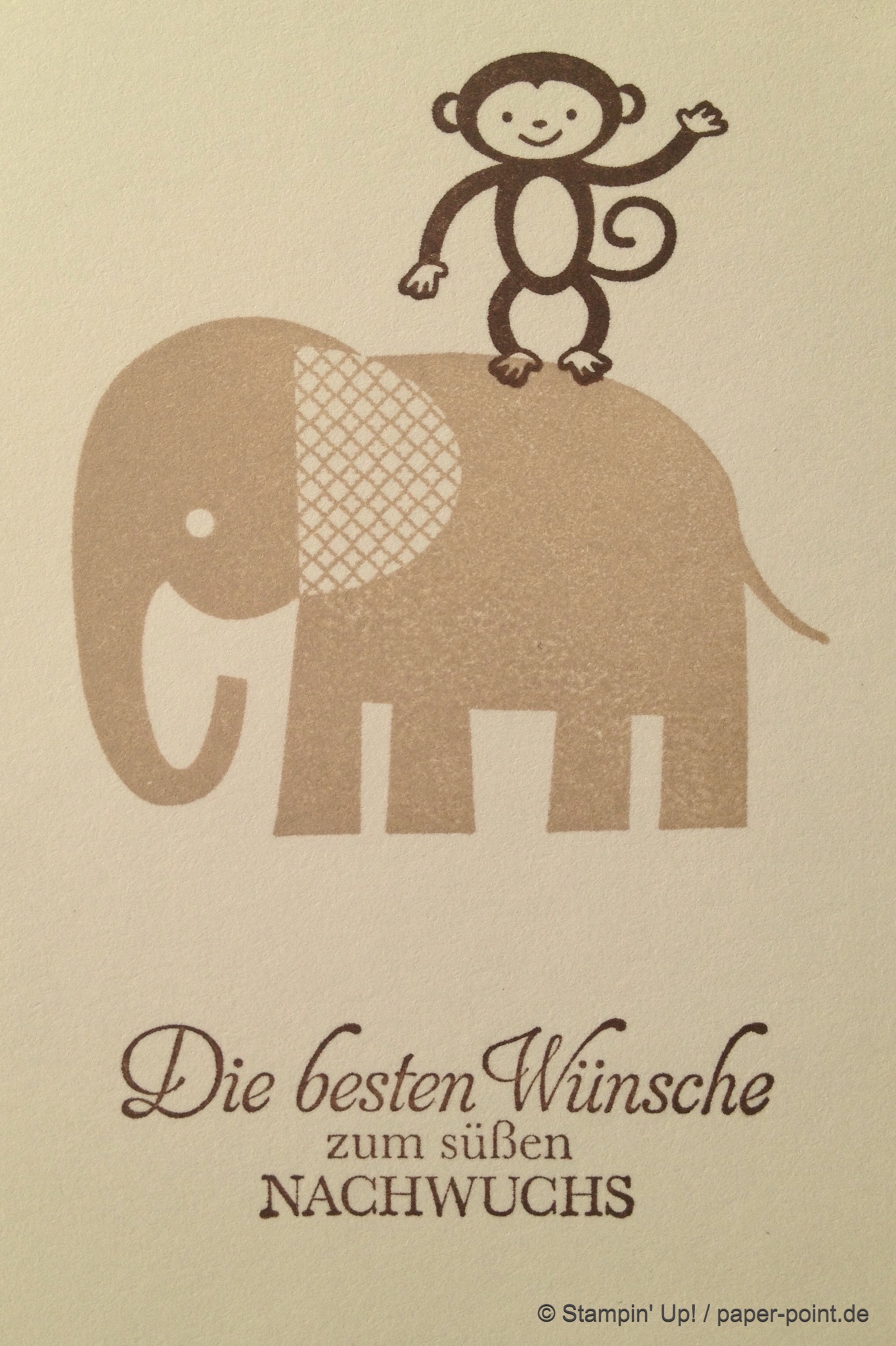 Wir haben die Stempelsets „Kleine ganz groß“ und „Zoo Babies“ benutzt. Außerdem wanderte ein „Nett-ikett“ außen auf die Karte.